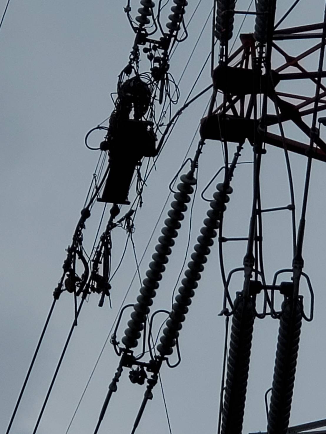 3〜5km程度の区間を1区間として、細いロープから太いワイヤロープ、そして電線へと引き替え、最後に決められた張力でがいし装置に取り付けます。